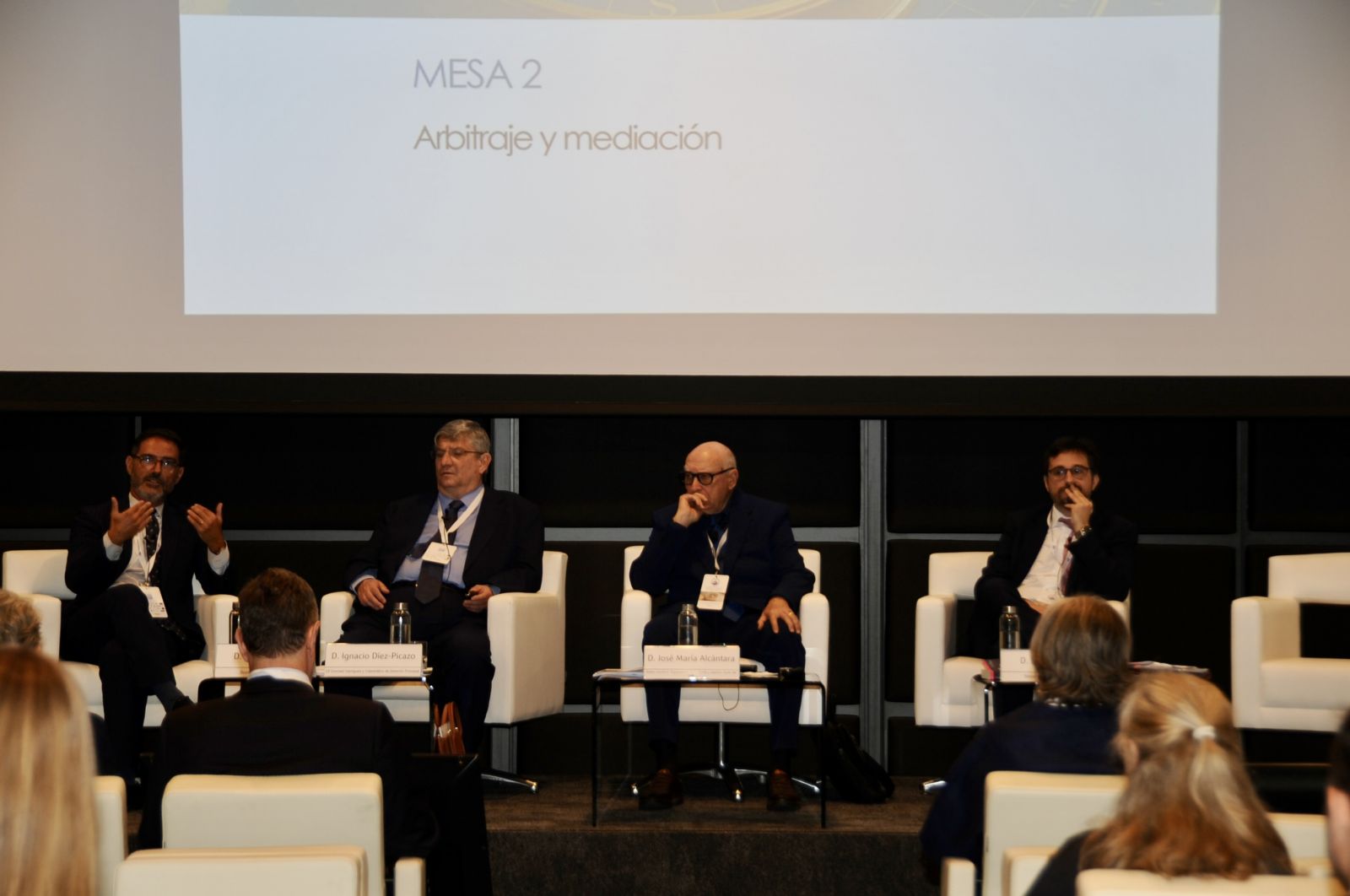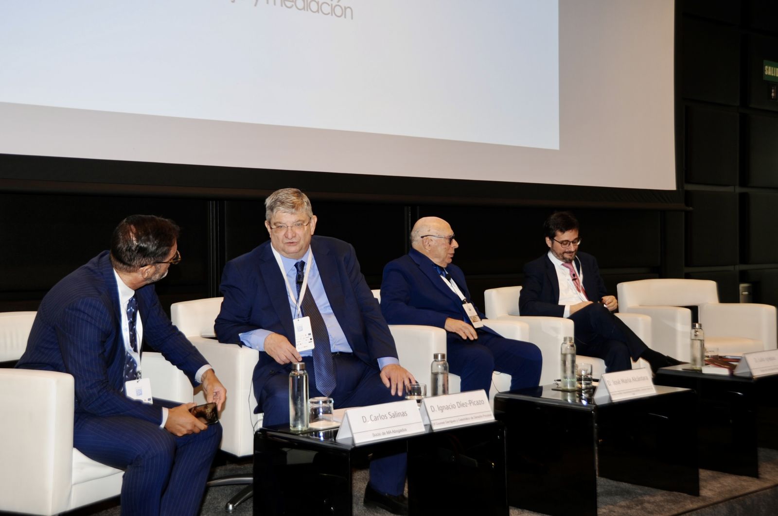 Tras una pausa-café en la que pudimos aprovechar para saludarnos de nuevo y conversar (uno de los aspectos más importantes de nuestros Congresos), se inició la segunda mesa, sobre “Arbitraje y mediación”, moderada por el Prof. Carlos Salinas y que contó con las aportaciones de los Profs. Ignacio Díez-Picazo, catedrático de Derecho procesal, y Julio Iglesias. Ambos explicaron las dudas que plantea la reforma legal operada por la Ley Orgánica 1/2025 en relación con el requisito de procedibilidad de intentar un acuerdo de buena fe antes de presentar una demanda o someter el asunto a mediación. Además, nuestro expresidente, asociado de honor y árbitro marítimo D. José María Alcántara, presidente a su vez del Grupo de Trabajo interno de la Asociación sobre arbitraje marítimo, recordó la existencia de nuestras reglas de arbitraje e instó a todos los asociados a utilizar este sistema de resolución de controversias marítimas, anunciando nuevos trabajos de dicho grupo para el curso 2025/26.