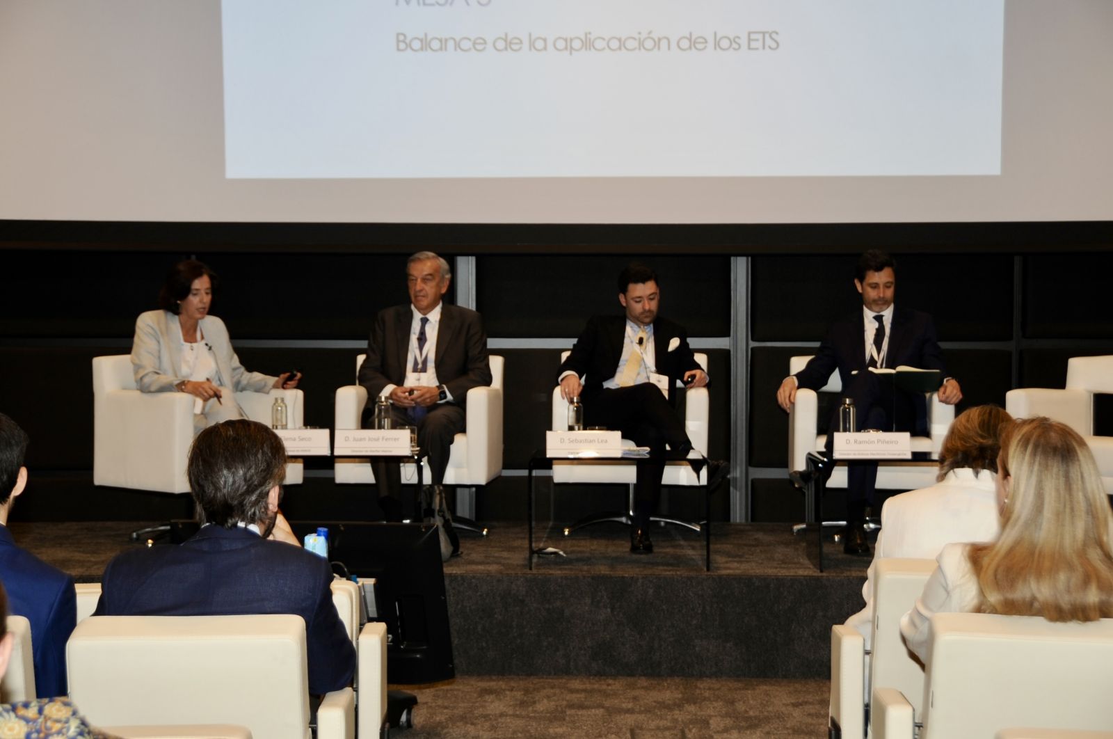 El viernes 13 las sesiones comenzaron con una mesa moderada por la Directora General de ANAVE y especial colaboradora de la AEDM, de la que fue vocal, Dña. Elena Seco, que contó con la intervención de D. Juan José Ferrer, D. Ramón Piñeiro y D. Sebastian Lea y que hizo un “Balance de la aplicación de los ETS”. Durante la sesión, se compartieron estimaciones y datos directos sobre los costes asociados, se expresó la preocupación por la doble regulación de la UE y la OMI, y se debatió sobre la escasa o nula reversión de los fondos obtenidos con este nuevo “impuesto”, como se calificó, a las emisiones. Asimismo, se subrayó la importancia de las cláusulas desarrolladas por Bimco y otros actores, y el hecho de que los armadores y fletadores han sido capaces de llegar a acuerdos sobre los costes que implica, así como sobre las dificultades no menores de la gestión y previsión de gastos en los fletamentos por viaje y por tiempo.