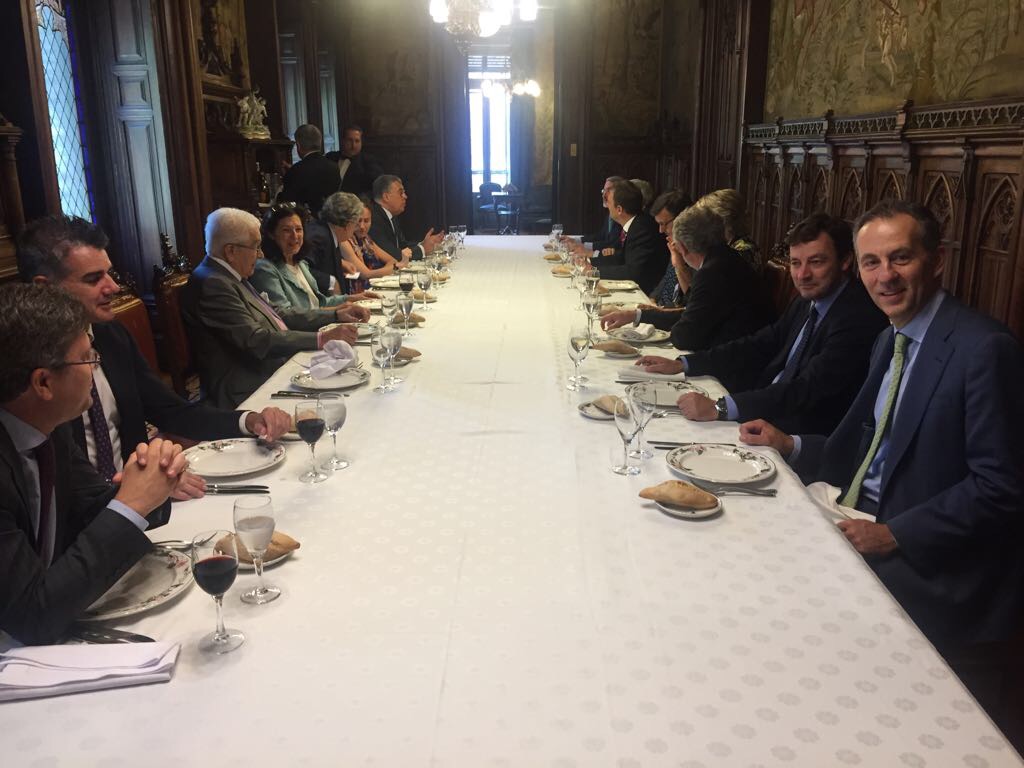 En el curso de estos meses se ha estado trabajando en el texto del Convenio, que persigue la colaboración en el ámbito de la aplicación práctica de tales procedimientos con el fin de profundizar y colaborar en la solución de los problemas prácticos que se vayan planteando, incluyendo la posibilidad de formular propuestas de lege ferenda. El Convenio fue suscrito por el Decano del Ilustre Colegio de Madrid D. Jose Ángel Martinez Sanchiz y por el Presidente de la AEDM, D. Eduardo Albors, con la asistencia de una nutrida representación de ambas Juntas de Gobierno. Con posterioridad a la firma, el Colegio ofreció un almuerzo en su extraordinaria sede en el casa palacio de D. Manuel Gonzalez-Longoira.
